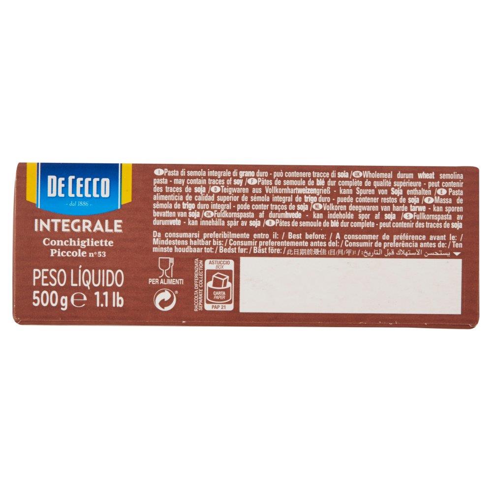 Incluso 4% di IVADe Cecco Integrale Conchigliette Piccole n° 53 500 g