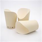 Contenitori realizzati in carta bianca accoppiata con PE idonei per l’asporto di patatine fritte e tanti altri alimenti contenenti liquidi ed oli, può essere riciclato nella carta e rispetta tutti gli standards previsti in materia di food contact.